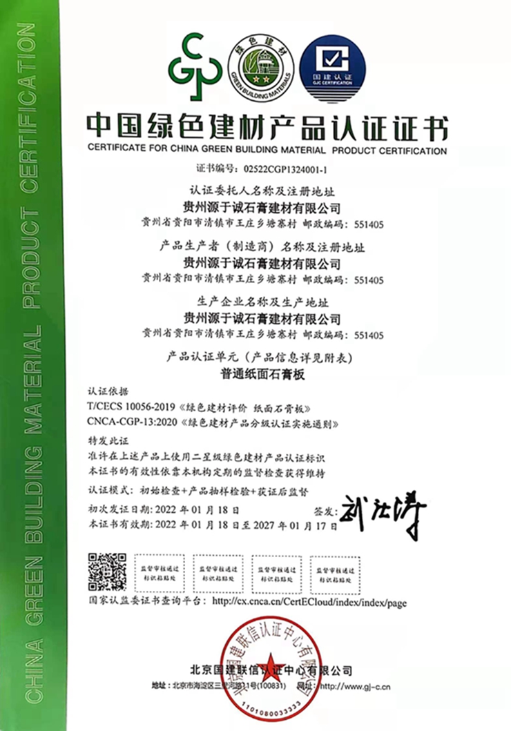 中國綠色建材產(chǎn)品認證證書